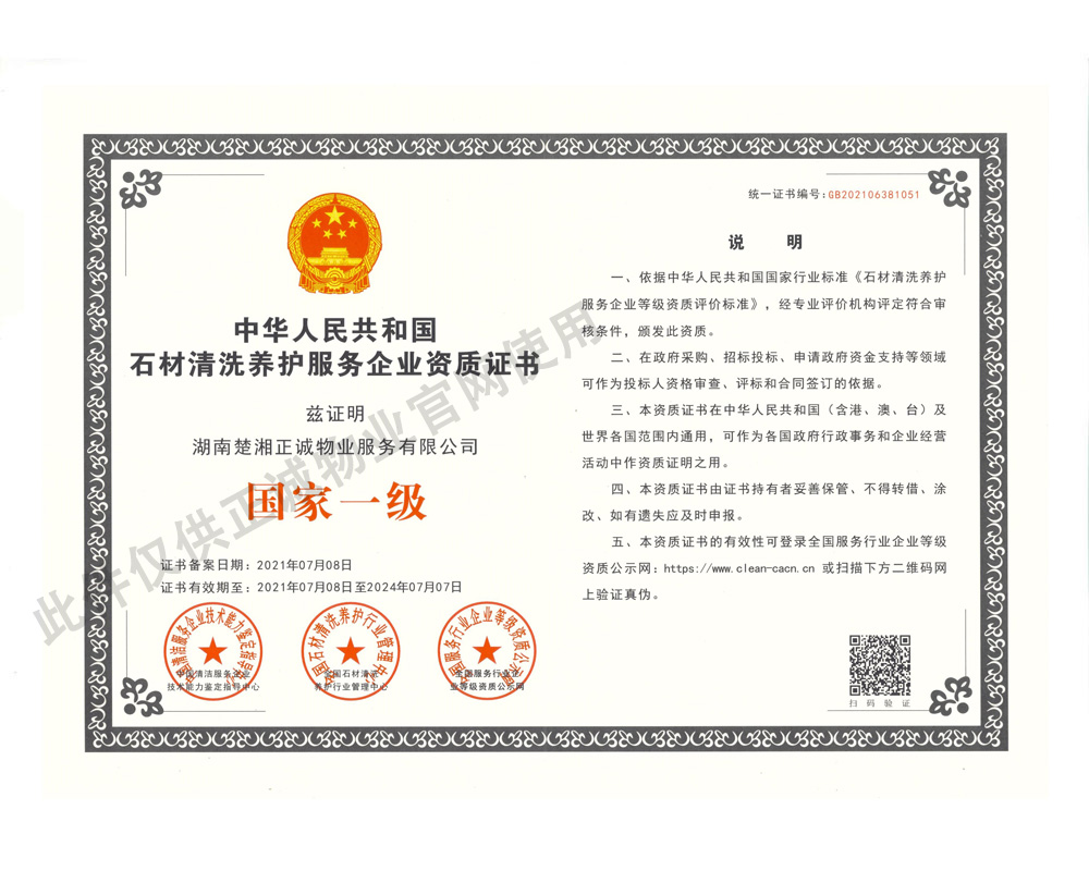 石材清洗養(yǎng)護(hù)服務(wù)企業(yè)資質(zhì)證書